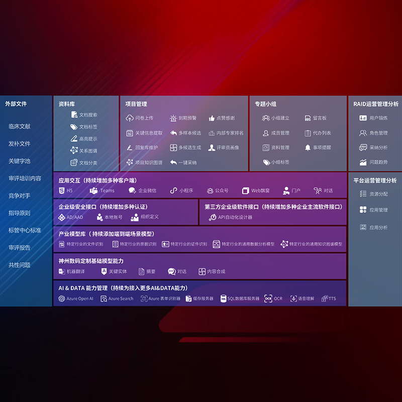 医疗器械产品上市前,,,,要熟悉严格与繁复评审标准,,整理分析监管机构指导文件中的海量信息。。企业急需一个智能化解决方案,,,,提升知识管理效率,,,提高评审通过率,,,以提升其市场竞争力。。。